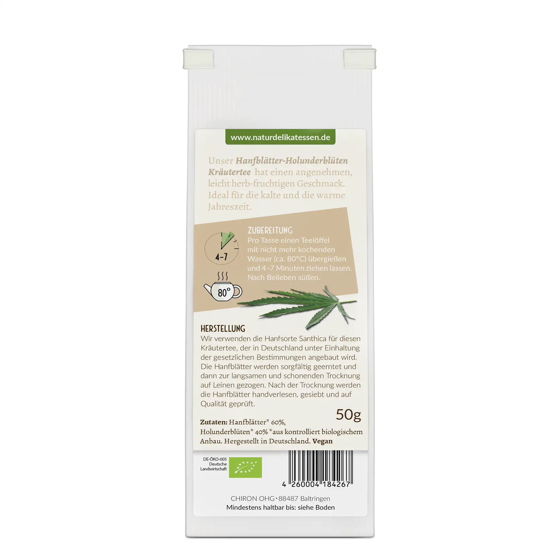 Hanfblätter* 60%, Holunderblüten* 40%* Aus kontrolliert biologischem Anbau.
