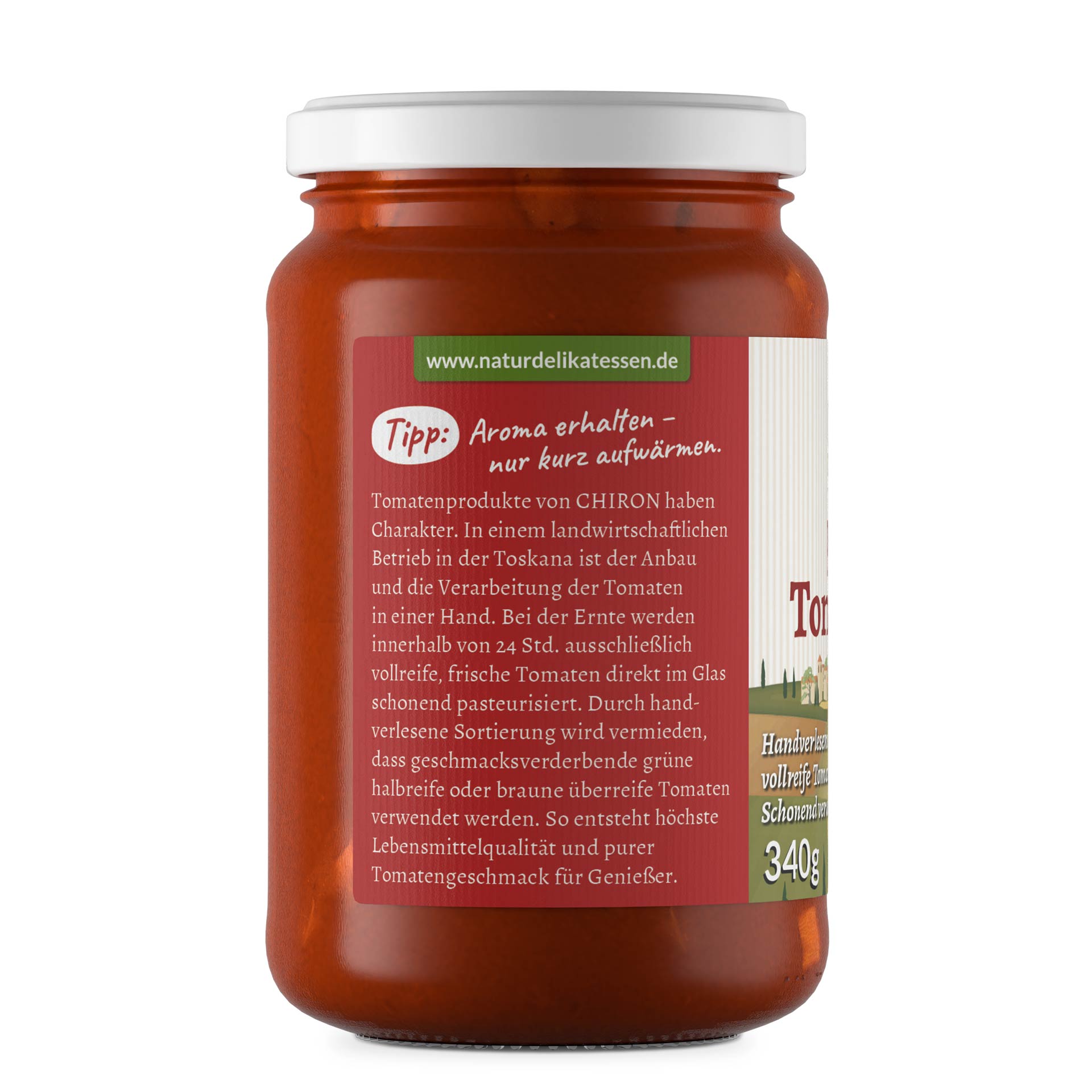 Die Tomatensaucen “Gemüse” und “Pikant” ohne Öl haben über 90 % Tomatenanteil und werden zusammen mit frischem Gemüse pasteurisiert. Der Geschmack ist authentisch und sehr beliebt.
